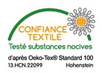 Housse textile certifiée « Oeko-Tex® », label international visant à garantir des matériaux exempt de substances toxiques pour le corps et pour l’environnement