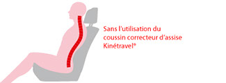 KinéTravel propose une gamme d’accessoires de voyage grand confort. Développée en partenariat avec un kinésithérapeute spécialiste du dos. 70 à 80% des français seront confrontés à des maux de dos. C'est le deuxième motif de consultation chez les médecins généralistes et la première cause d’invalidité chez les + de 45 ans. Le trajet en voiture est une cause fréquente de maux de dos, il peut les déclencher ou les aggraver, et également être à l’origine de douleurs dans des zones annexes : épaules, jambes et  bras. Voici les principales origines des traumatismes en voiture : posture prolongée, vibrations mécaniques, affaissement du corps, stress au volant qui génère de la tension, manque de soutien sous les coudes, déshydratation / climatisation intensive, siège, appuie tête et volants mal réglés / trop éloignés et pour les passagers : endormissement nuque fléchie.