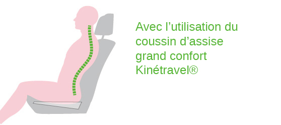 KinéTravel propose une gamme d’accessoires de voyage grand confort. Développée en partenariat avec un kinésithérapeute spécialiste du dos. 70 à 80% des français seront confrontés à des maux de dos. C'est le deuxième motif de consultation chez les médecins généralistes et la première cause d’invalidité chez les + de 45 ans. Le trajet en voiture est une cause fréquente de maux de dos, il peut les déclencher ou les aggraver, et également être à l’origine de douleurs dans des zones annexes : épaules, jambes et bras. Voici les principales origines des traumatismes en voiture : posture prolongée, vibrations mécaniques, affaissement du corps, stress au volant qui génère de la tension, manque de soutien sous les coudes, déshydratation / climatisation intensive, siège, appuie tête et volants mal réglés / trop éloignés et pour les passagers : endormissement nuque fléchie.